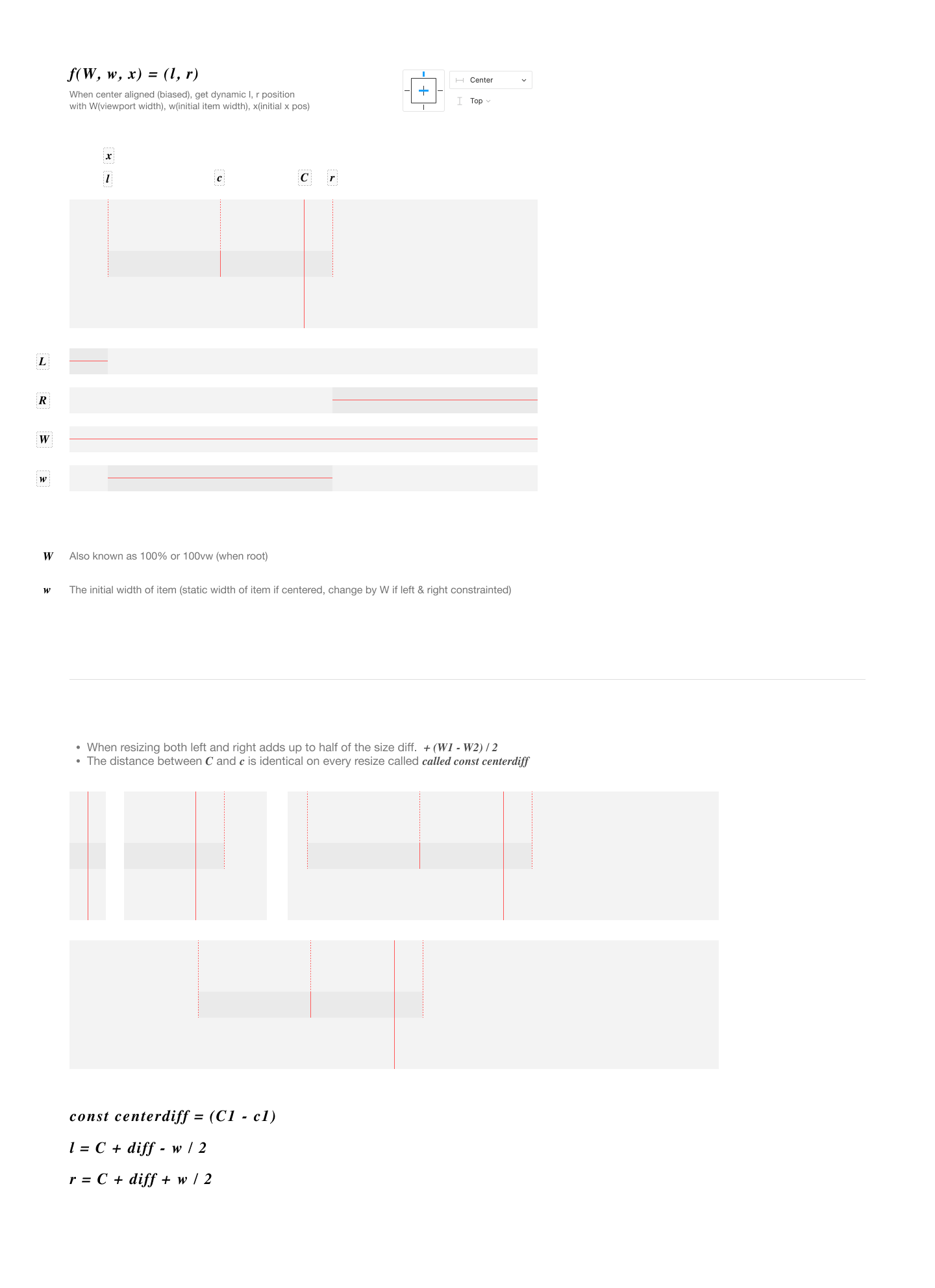 This document is based on horizontally centered element. (which applies the same to vertically centered.)